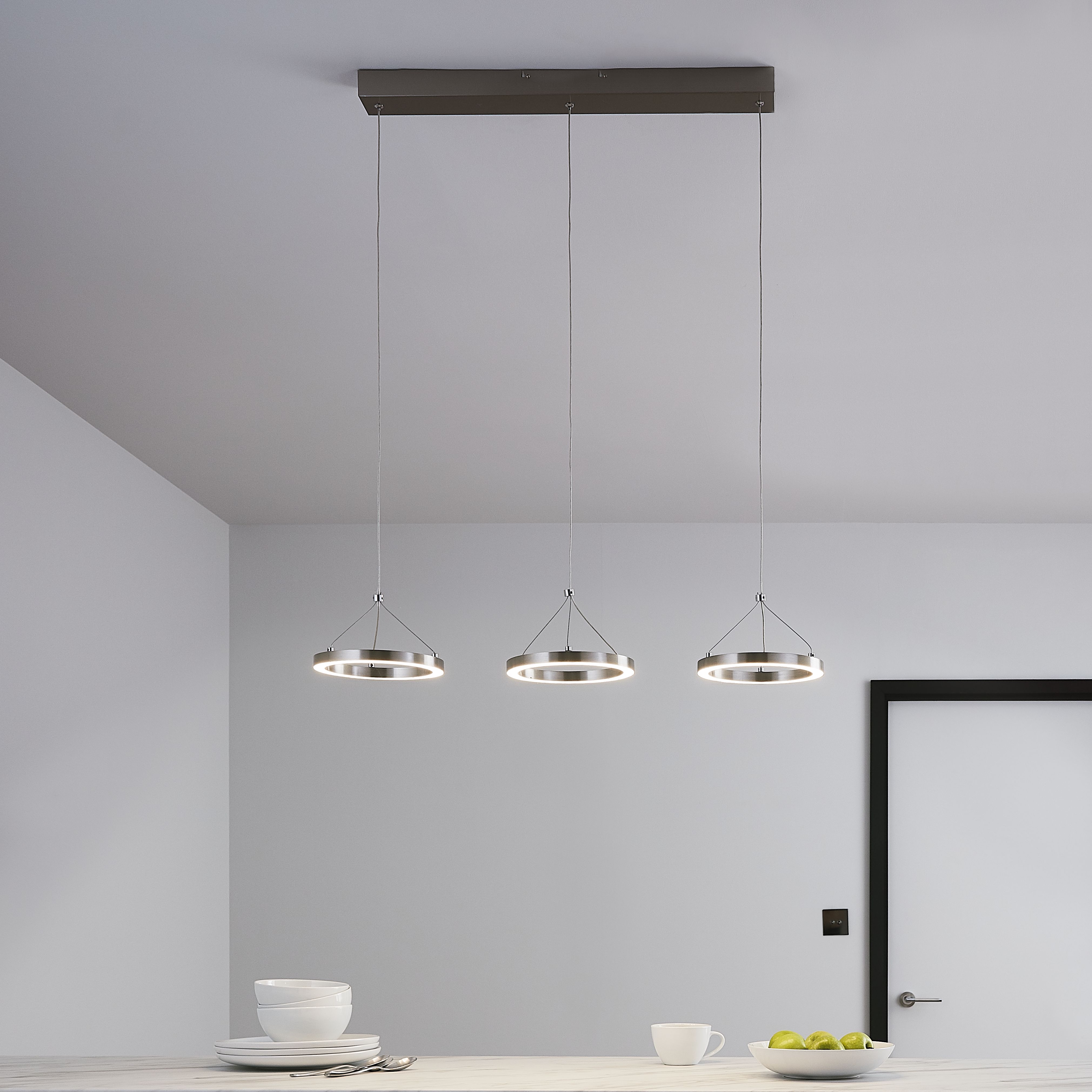 Taphao Brushed Chrome Effect 3 Lamp Pendant Ceiling Light Dia 200mm Diy At B Q